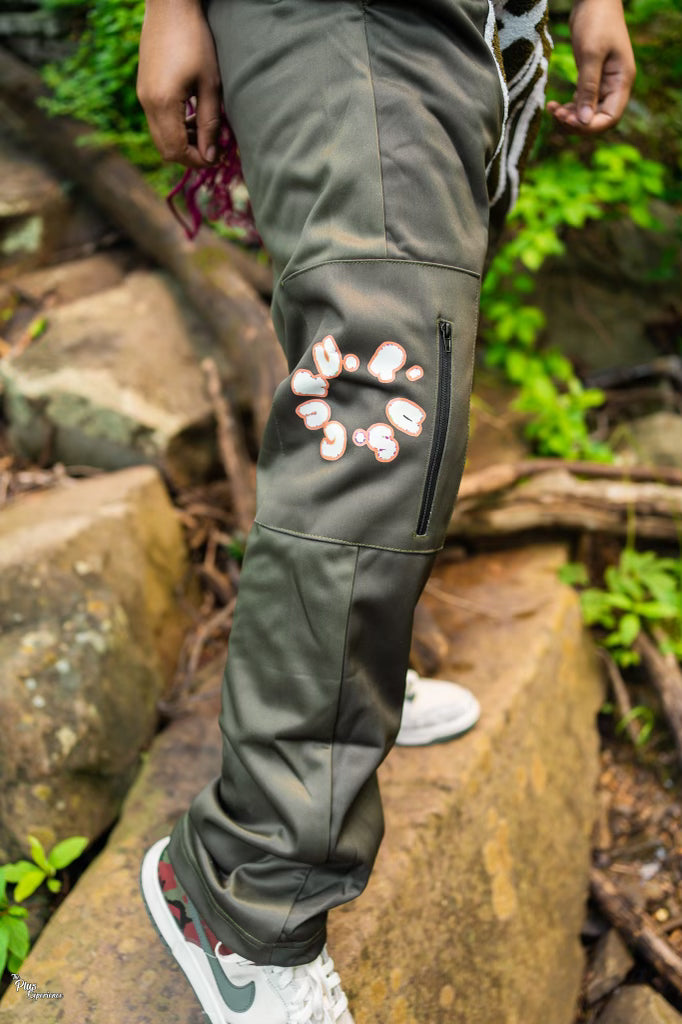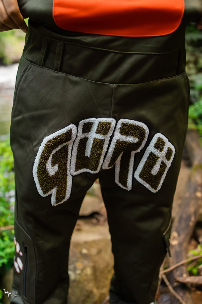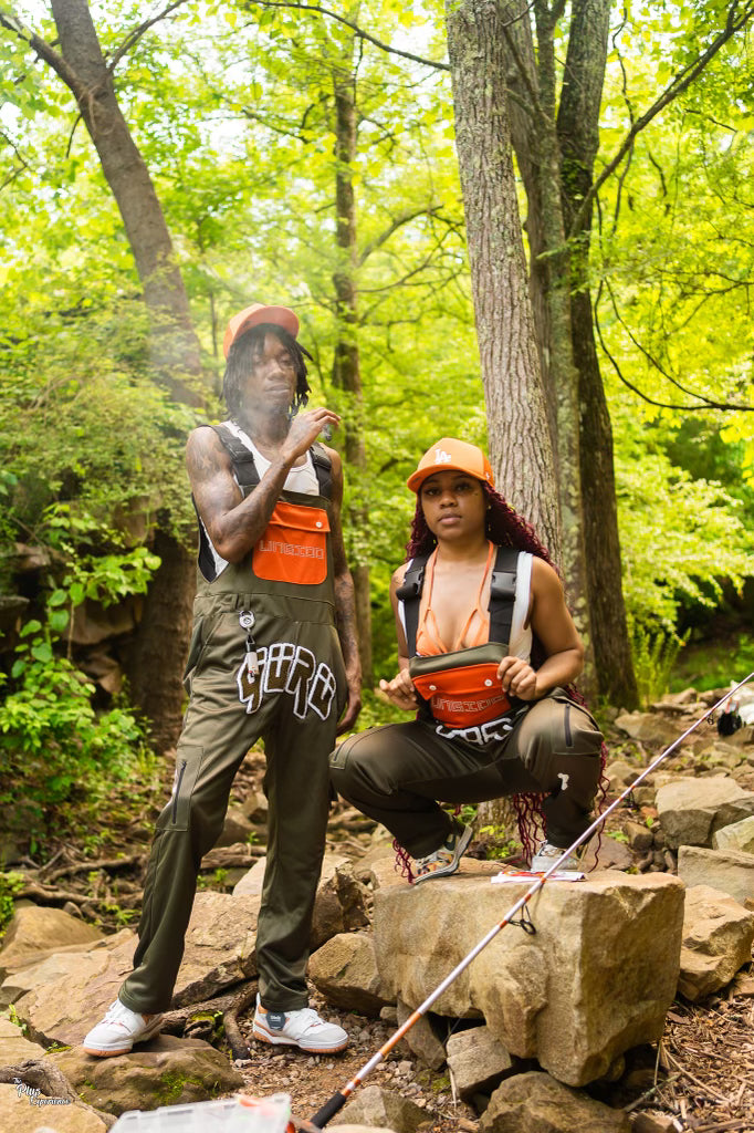 The material is made out of heavy 350 gsm Polyester , mesh insulation, Ungido across the front is made with 3M digital print, left side of pants leg also has rainbow 3M digital print as well. The overalls also come 4 functioning pockets first one being across the chest with buttons, next we have two pockets on each pants leg and one more zipper pocket on the left side. The overalls will come in 4 Different colors black & grey , olive green & orange, purple pink blue & grey, and Money green and orange.